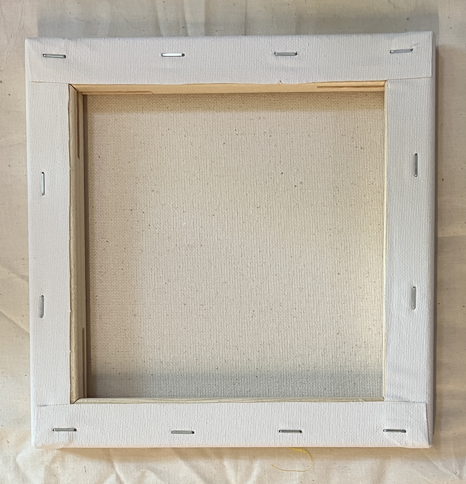 An 8×8 inch square and 1/2″ deep primed white canvas is ready for your creativity!